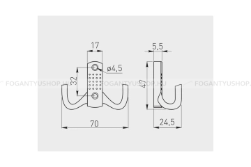 Kabát fogas - K23-B0 - Matt fekete 20M - Acél fém - Dupla akasztós fogas