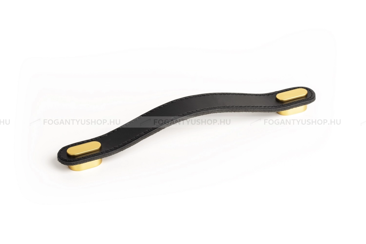 Fogantyú Fogantyú OBLONG - 160 mm - Fekete bőr - Szálcsiszolt arany - Zamak fém ötvözet - Bőr - Bőrrel kombi - 160 mm - - Zamak fém ötvözet - Bőr - Bőrrel kombinált fém bútorfogantyú